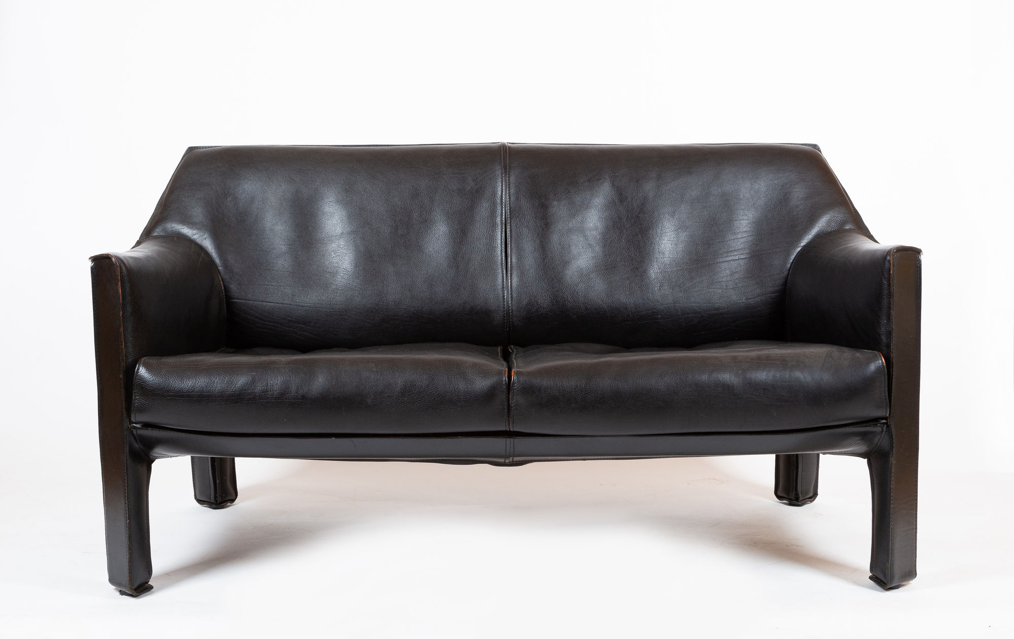 Cab 415 sofa in black leather by Mario Bellini for Cassina verd 1980