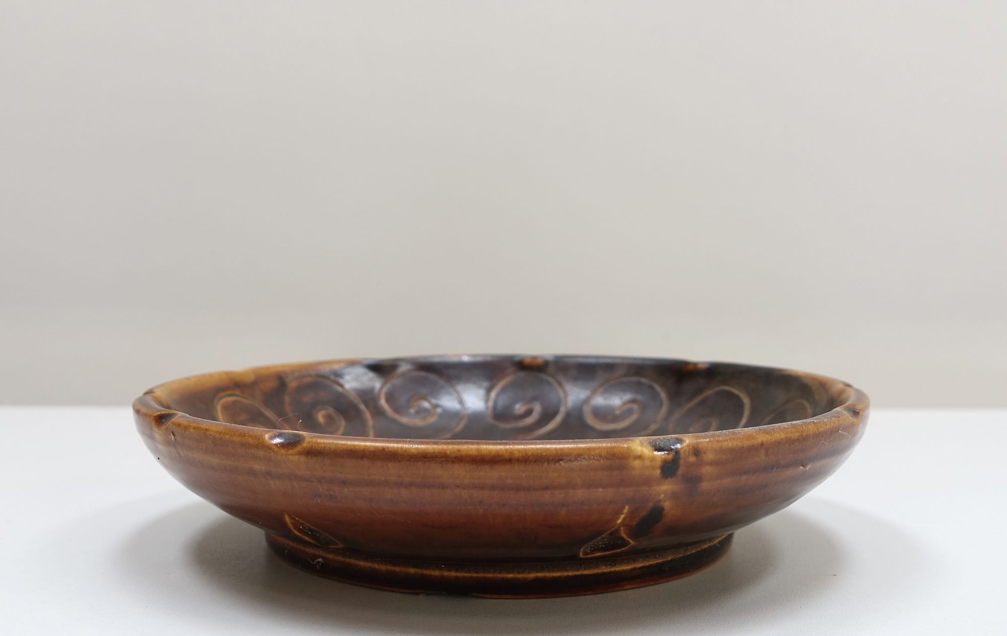Ceramic dish by Swiss artist Heinrich Meister. Engraved decoration in enamel, circa 1930. Signature under the ba...