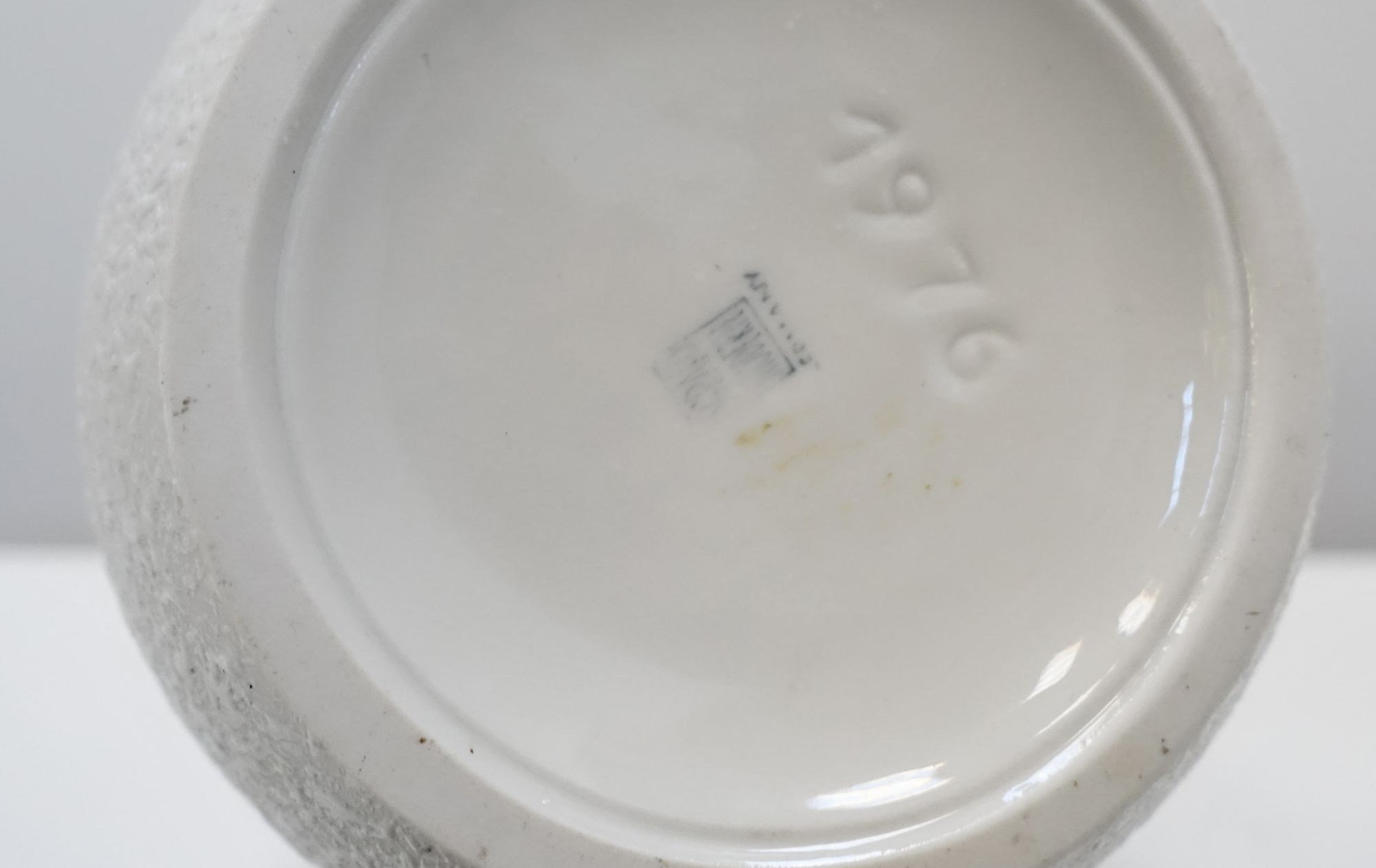 Sculptural porcelain vase with white “crispé” glaze, certainly of German production, with engraved model numberi...