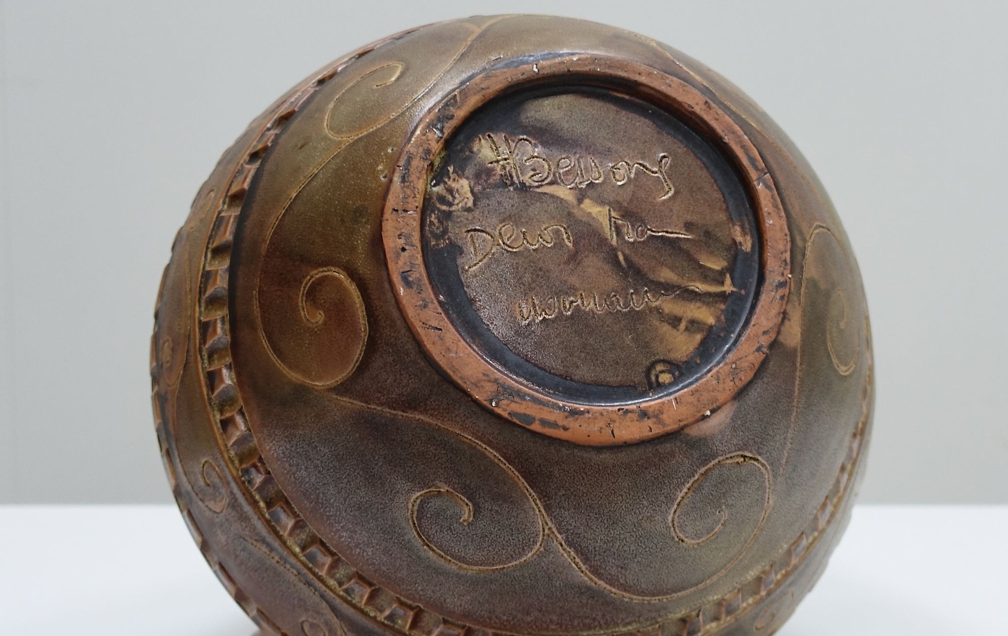 Stoneware pot by Swiss ceramist Edouard Chapallaz, circa 1960-70. Handwritten signature with workshop stamp ...